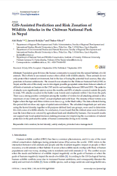 This is a research paper on GIS-assisted prediction and risk zonation of wildlife attacks in the Chitwan National Park in Nepal. It entails; that the surge in population compels human communities to encroach on wildlife habitats, leading to conflicts as animals seek food and protection. Research in Nepal’s Chitwan National Park aimed to analyze the spatial links between animal attacks on humans from 2003 to 2013. Attacks varied by month, with 89% happening outside the park, mainly within 1 km of the park’s buffer zone. Most attacks occurred in forest-cropland areas. Strong correlations existed among victim numbers, except for elephants and wild boars. Risk zones were identified near forests and agricultural lands, suggesting coexistence strategies for park protection and human safety.