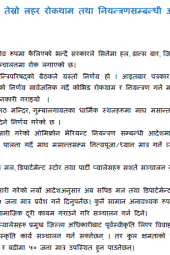 This is an official statement by the government of Nepal regarding the prevention and control of Omicron on 16th Jan. 2022. The government imposed restrictions on various activities, including mass gatherings, dance bars, gyms, cinemas, and religious ceremonies, to curb the rapid spread of the COVID-19 Delta variant. The decision was made during the cabinet meeting held on Friday and will be effective until further notice. The government has also directed local authorities to strictly enforce the health and safety protocols and penalize those not adhering to the guidelines. Additionally, specific measures include limiting the operation of shops, stores, and markets to once a week, with a maximum of 25 people allowed inside at a time. Restaurants and eateries are permitted to operate but must follow strict safety measures. The government emphasized the need for vigilance and adherence to guidelines to prevent further spread of the virus. The decision aligns with the ongoing efforts to manage the impact of the Omicron variant and enforce public health and safety standards.