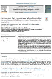 This is a case study published in the Journal of Hydrology: Regional Studies. In this study, the Khando River in eastern Nepal is examined to assess flood hazards and vulnerabilities in a frequently flooding area. The analysis covers return periods of 20, 50, 100, and 200 years and focuses on wattle and daub houses along the river. The study reveals that the 2017 flood was equivalent to a 20-year return period flood. It also shows that the difference in inundation depth between 20 and 200 years of return periods is not significant. Vulnerability analysis indicates that wattle and daub houses are highly vulnerable, even to a 20-year return period flood, suggesting potential future consequences for floods of 50, 100, and 200-year return periods.