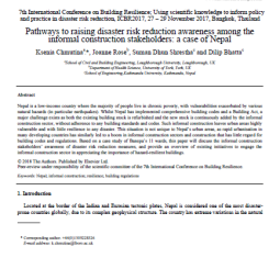 36. Pathways to Raising Disaster Risk Reduction Awareness Among the Informal Construction Stakeholders Case of Nepal