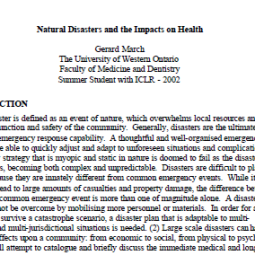 64. The Impacts of Natural Disasters on the Poor: A Background Note