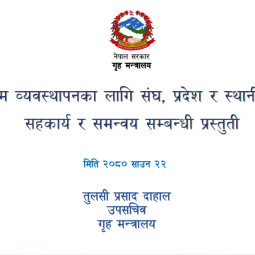 Coordinating Roles of Three Tires of Government for Disaster Risk Reduction and Management (विपद् जोखिम व्यवस्थापनका लागि संघ, प्रदेश र स्थानीय तह बिचको सहकार्य र समन्वय)