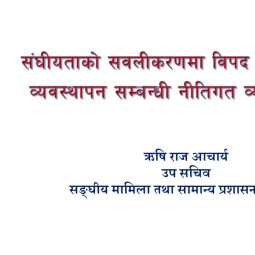 Strengthening Federalism and DRRM Policy Provision in Nepal (संघीयताको सवलीकरणमा विपद् जोखिम व्यवस्थापन सम्बन्धी नीतिगत व्यवस्था)