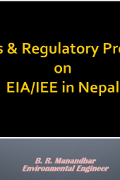 The presentation outlines the regulations and legal stipulations related to Environmental Impact Assessment (EIA) and Initial Environmental Examination (IEE) in Nepal. It includes the legal provisions found in the Environmental Protection Act of 2053 BS and the Environmental Protection Regulation of 2054 BS.