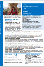 This situation report provides an overview of the situation of the communities post-disaster and responses to WFP. WFP transitioned to the final phase of its earthquake emergency response in Nepal after successfully reaching 100 percent of planned recipients in phase two. This early recovery phase, lasting until December, aims to serve 409,000 people with food and cash support in exchange for work on community asset rehabilitation. The Nepal Food Security Monitoring System reported a significant reduction in immediate food assistance needs, attributing it to post-quake food aid and market access maintenance. WFP's protracted relief and recovery operation, starting in January 2016, will continue assisting earthquake-affected individuals. Remote Access Operations prepares for winter by committing to transporting over 1,000 mt of humanitarian cargo to isolated communities. WFP's earthquake response has received contributions from various donors, including private sector donors and multilateral donors like the European Union and UN CERF.