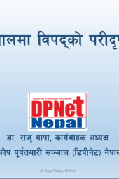 This presentation titled “Scenario of Disaster in Nepal (नेपालमा विपद्को परिदृष्य)” was shared by Dr. Raju Thapa, Vice-Chair, DPNet Nepal during the “Learning/Sharing Program for Implementing and Strengthening DRR Policies and Strategies at Provincial Level”.