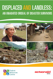 This report published by ActionAid focuses on the plight of individuals who were displaced by two major disasters, namely the 2014 flash floods and the 2015 earthquake. Many of these displaced families continue to endure substandard and undignified living conditions, even years after the disasters occurred. The prolonged displacement has had severe health and social consequences, particularly affecting vulnerable groups such as women, children, the elderly, and disabled individuals. The amenities and services available in the displacement settlements are insufficient to cater to the special needs of these populations. Furthermore, the government's efforts to resettle the displaced families have been slow and grossly inadequate, primarily emphasizing providing land for housing rather than addressing the survivors' livelihoods. Additionally, there is a lack of consistency in the resettlement grants provided to families displaced by different disasters, despite experiencing similar types and scales of losses as per the report.