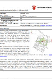 This document provides a situation update on the Bajhang earthquake that occurred in Bajhang on the 3rd of October 2023 along with the situation of the adjoining districts after the mishap took place.