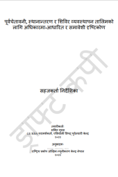 The document written in Nepali as "पुर्व चेतावनी, स्थानान्तरण र शिविर व्यवस्थापन तालिमको लागि अधि कारमा आधारित र समावेशी दृष्टिकोण" pertains to the regional training in the field of disaster preparedness, relocation, and camp management, with an emphasis on inclusive and sustainable approaches, including resilience-building and integration into development programs.
