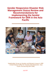 This document serves as a chief form of guidance towards the implementation of the Sendai Framework for Disaster Risk Reduction in the Asia Pacific region in a gender-responsive and socially inclusive manner by providing key action points. The Sendai Framework for Disaster Risk Reduction 2015-2030 signals a turning point by recognizing women’s indispensable role in disaster preparedness, management, response, and recovery, and the need for women’s empowerment to enable and strengthen their role.