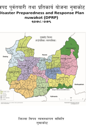 The district's preparedness and reaction for disasters, including prior catastrophe studies, risk assessments, and mapping, are outlined in the "Disaster Preparedness and Response Plan Nuwakot, 2021". The disaster preparedness and response plan outlines key objectives aimed at mitigating the impact of disasters. It begins with a detailed description of the disaster risk situation, including an overview of past disasters, existing policies, and institutional arrangements. The plan analyzes major and priority disasters, conducts a general disaster assessment, and maps potential impact areas. It also includes a comprehensive disaster risk assessment and vulnerability analysis, along with forecasting to anticipate future events. The plan identifies the roles of concerned organizations and presents a general preparedness strategy, as well as a detailed emergency response plan covering all thematic areas for actions during and after disasters. Finally, the plan includes an implementation strategy to ensure effective execution of preparedness and response measures.
