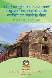 The Post-Disaster Recovery Plan (2081/082–2083/084) developed by Nepal's National Disaster Risk Reduction and Management Authority outlines a comprehensive, multi-sectoral strategy to support the recovery from the 2023 Jajarkot earthquake and the 2081 monsoon-induced disasters. It emphasizes a coordinated effort among federal, provincial, and local governments, as well as development partners, to restore and rebuild damaged physical infrastructure and social systems. The plan addresses vital sectors such as housing, education, health, water and sanitation, agriculture, energy, roads, and heritage, with an estimated budget exceeding NPR 101 billion. It also incorporates principles of inclusivity, disaster resilience, and sustainability, calling for improved data systems, capacity building, and integrated governance mechanisms to ensure effective implementation and long-term resilience in the face of future disasters.