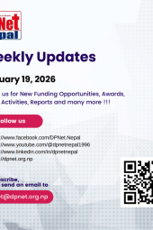 The DPNet Nepal Weekly Update for January 19, 2026 showcases a wide range of opportunities across disaster risk reduction, climate resilience, urban sustainability, conservation, education, and development. It features international conferences and fellowships on sustainable urban planning, climate protection, disaster risk management, conservation reporting, and early-career research. The update highlights numerous fully funded scholarship opportunities for Master’s and PhD studies in Europe, China, the United States, and the United Kingdom. It also includes global and regional awards and grants supporting climate action, biodiversity conservation, environmental journalism, urban research, youth leadership, photography, and feminist climate justice. In addition, the bulletin lists key vacancies, consultancies, and funding calls related to climate adaptation, WASH systems, environmental health, sustainable agriculture, clean energy financing, conservation research, and protected area development at national, regional, and global levels.