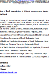 Scrub typhus is a disease caused by a bacteria called Orientia tsutsugamushi and transmitted to people through bites of infected chiggers (larval mites). After the 2015 Gorkha earthquake in Nepal, a sudden upsurge in scrub typhus cases was reported with repeated outbreaks from different parts of the country. This study has documented epidemiology of scrub typhus and its causative agents in human, rodent and chigger mites confirming the local transmission O. tsutsugamushi with a firmly established ecology in Nepal. The local transmission of the diseases from most parts of the country demands strengthening for systematic surveillance, early outbreaks detection, and immediate response actions including treatment and preventive measures.