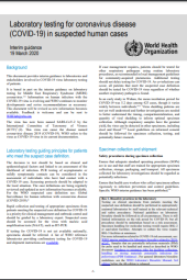 This document provides interim guidance to laboratories and stakeholders involved in the COVID-19 virus laboratory testing of patients. It is based in part on the interim guidance on laboratory testing for Middle East Respiratory Syndrome (MERS) coronavirus.1-6 Information on human infection with the COVID-19 virus is evolving and WHO continues to monitor developments and revise recommendations as necessary. Given the evolving information on human infection with the COVID-19 virus, the WHO is actively monitoring developments and will adjust recommendations as needed. Updates to this document will be made as new information emerges.
