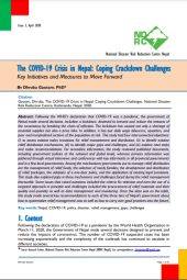 This study examines the impact of Nepal's COVID-19 lockdown, focusing on its effects on essential supplies, price hikes, and the vulnerability of certain populations. It aims to assess relief policy provisions, identify distribution mechanisms, highlight gaps and challenges, and provide recommendations. The study relies on a review of published documents and virtual interviews with key informants from provincial and local governments. The mechanisms explored include relief fund management, family selection, package development, a one-door policy, and adherence to legal provisions. The study addresses gaps and challenges, such as selection criteria, targeted approaches, procurement issues, and data management. The findings lead to recommendations for the three tiers of Nepal's government on improving relief management and sustaining best practices for the future.