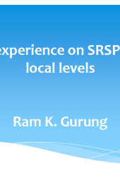 The presentation on: “Field Experience on SRSP at the Local Levels” prepared and presented by Mr. Ram k. Gurung gives an overview on the existing practices on SRSP and DRR, challenges on the implementation part, measures taken to overcome those challenges and the way forwards.