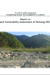 This report on “Hazard and Vulnerability Assessment of Darbung VDC, Gorkha” integrates both science and community-based knowledge to assess the vulnerability of the Darbung VDC, Gorkha District, Nepal. Using GIS application, hazard, and landslide susceptibility maps were prepared to conduct this project. Accordingly, community-based participatory tools were also applied to perform vulnerability assessment along with scientific knowledge to a larger extent to gain sustainability in Disaster Reduction Efforts. This document covers detailed information regarding all these as a project report.