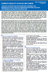 This document published by the UN Women in collaboration with the Ministry of Women, Children, and Social Welfare is a guideline on the Flood Response in Nepal in the year 2017. This is a guiding document for identifying and prioritizing vulnerable and marginalized populations such as LGBTI, ethnic-based minorities, and senior citizens for humanitarian response, recovery, preparedness, and Disaster Risk Reduction and Flood response.