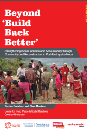 This report employs data gathered through a mixed method research design, comprising interviews with elected officials and local committees, focus group discussions with affected communities, a perception survey, street drama and video case studies of elderly people. It reveals a multifaceted image of social change: norms of status and identity questioned, women taking more prominent roles, recognition of collective community efforts for effective reconstruction, and acknowledgment of marginalized groups as essential societal members.